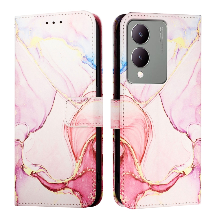 Para Vivoy Y17S 4G Global / Y17S 5G India Pt003 Funda de Cuero con Tapa con Patrón de Mármol (Oro Rosa)