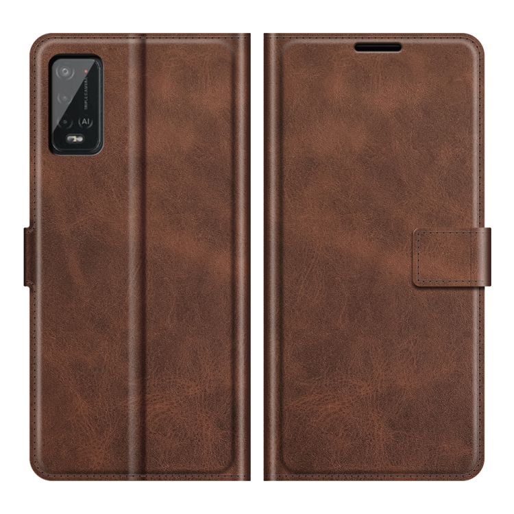 Funda Cuero Wiko Power U20 Retro Becerro Patrón Hebilla Horizontal con Soporte y Billetera (Marrón Oscuro)