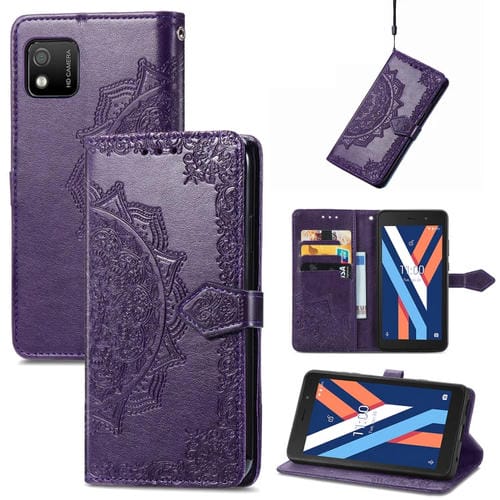 Funda de Cuero Flip para Wiko Y52 Mandala Flower En Relieve (Púrpura)