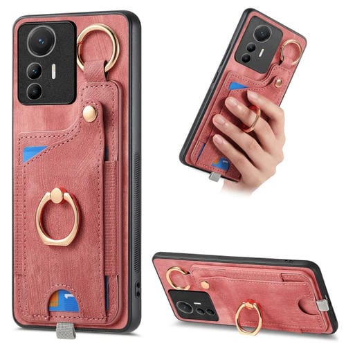 Para Xiaomi 12 Lite Funda para Teléfono con Bolsa para Tarjeta con Anillo y Sensación de Piel Retro con Lazo para Colgar (Rosa)