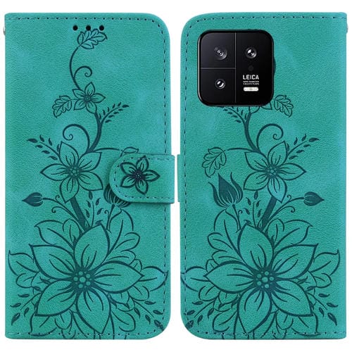 Para Xiaomi 13 5G Lily Funda de Teléfono de Cuero En Relieve (Verde)