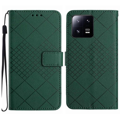 Para Xiaomi 13 Funda de Cuero con Textura de Rejilla Rómbica (Verde)