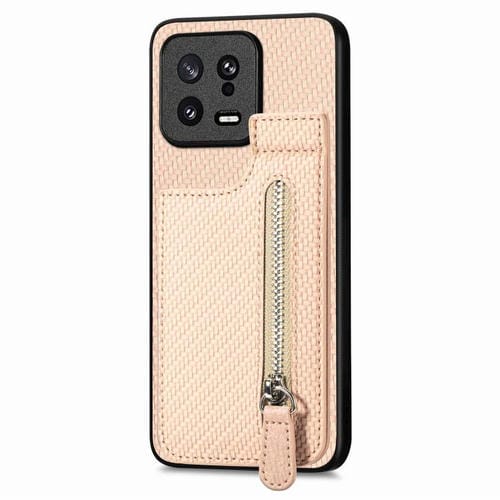 Para Xiaomi 13 Funda de Teléfono con Cremallera Vertical de Fibra de Carbono (Caqui)