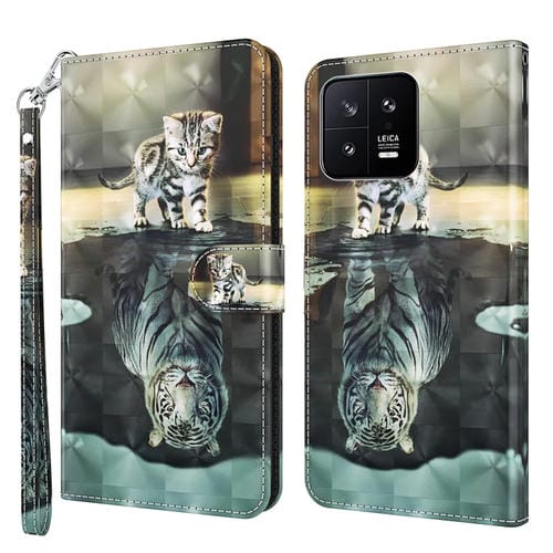 Para Xiaomi 13 Patrón de Pintura 3D Funda de Cuero con Tapa para Teléfono (Tigre de Gato)