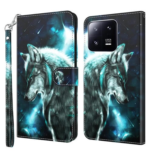 Pour Xiaomi 13 Pro Étui de téléphone en cuir à rabat avec motif de peinture 3D (Loup)