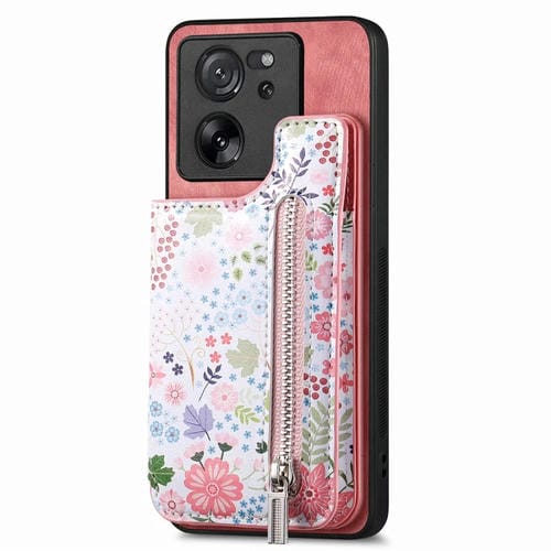 Para Xiaomi 13 Pro 5G Funda Trasera para Teléfono con Billetera con Cremallera Pintada Retro (Rosa)