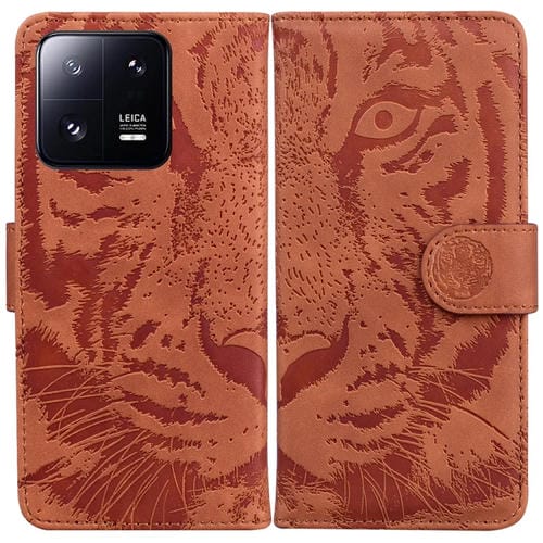 Para Xiaomi 13 Pro Funda de Teléfono de Cuero con Estampado de Tigre En Relieve (Marrón)