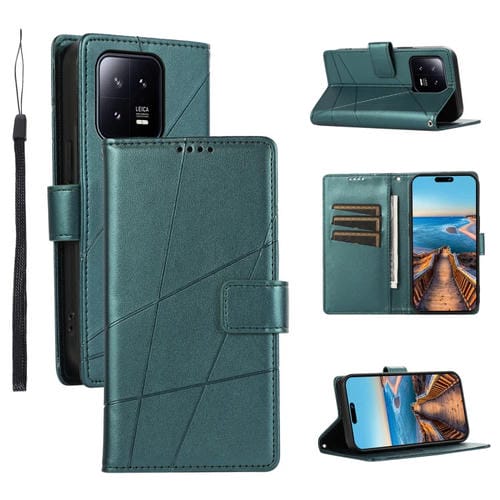 Para Xiaomi 13 Pu Funda de Teléfono con Línea En Relieve con Textura de Cuero Genuino (Verde)