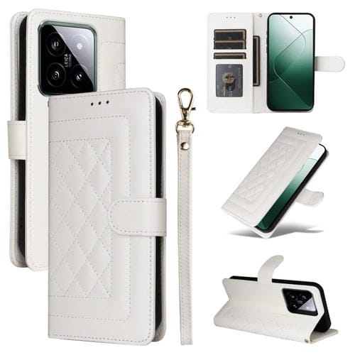 Para Xiaomi 14 5G Diamond Lattice Funda De Cuero Para Teléfono Con Tapa (Blanco)