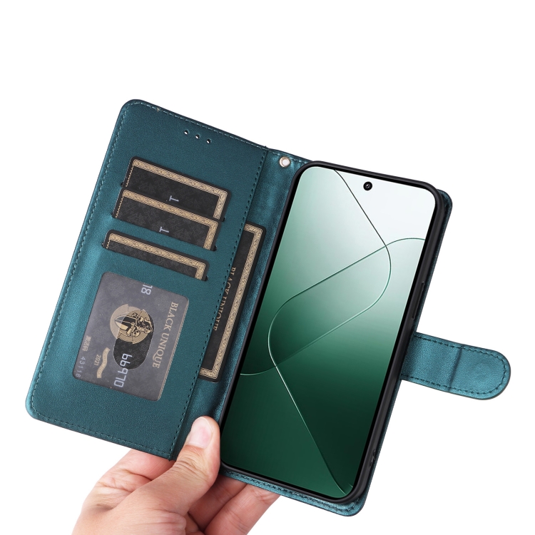Para Xiaomi 14 5G Diamond Lattice Funda De Cuero Para Teléfono Con Tapa (Verde)