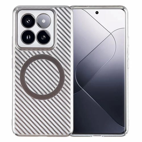 Para Xiaomi 14 6D Caja De Teléfono Para Pc Magsafe Transparente De Fibra De Carbono Plateada (Gris Titanio)