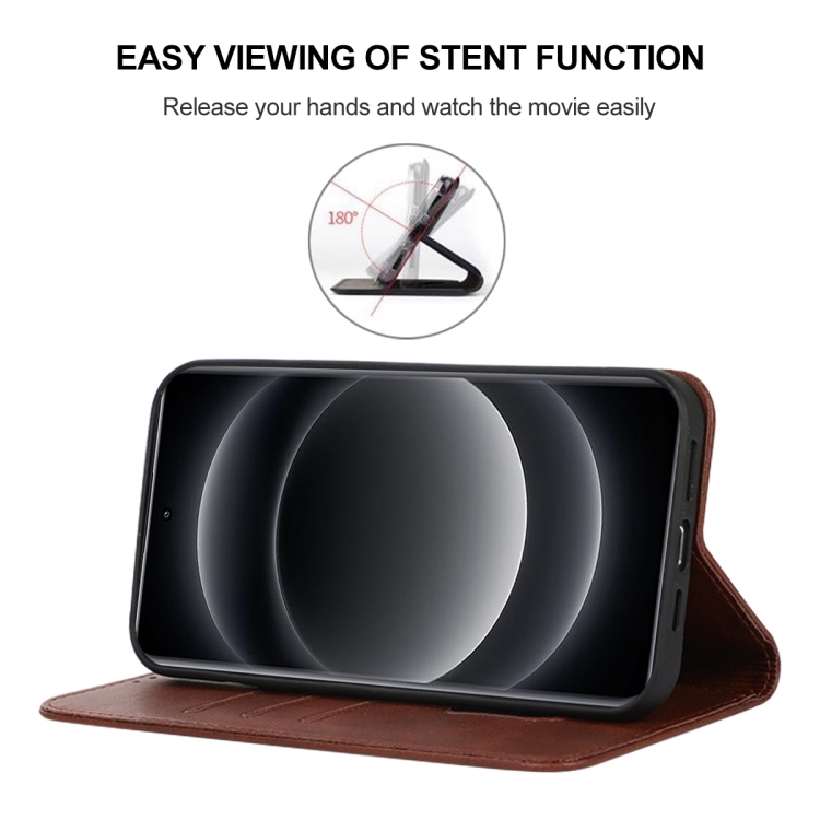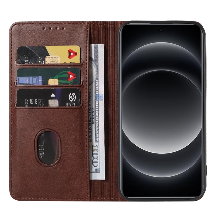 Para Xiaomi 14 Funda De Cuero Para Teléfono Con Cierre Ultra Magnético (Marrón)