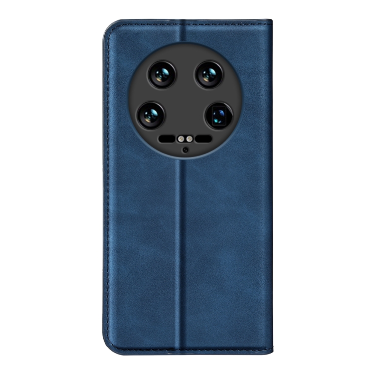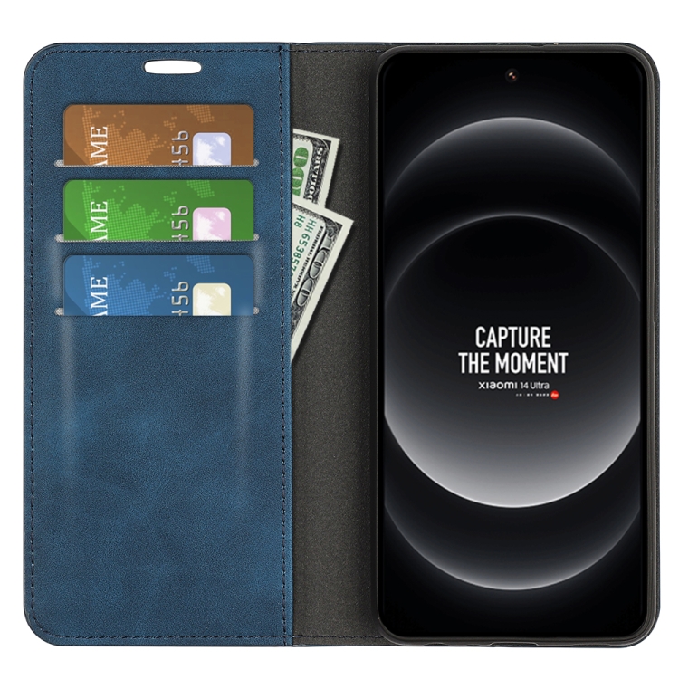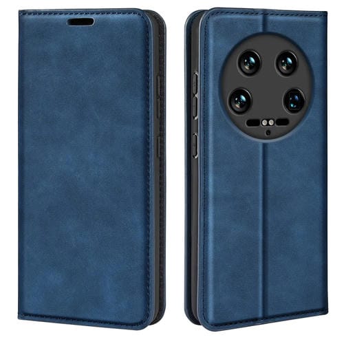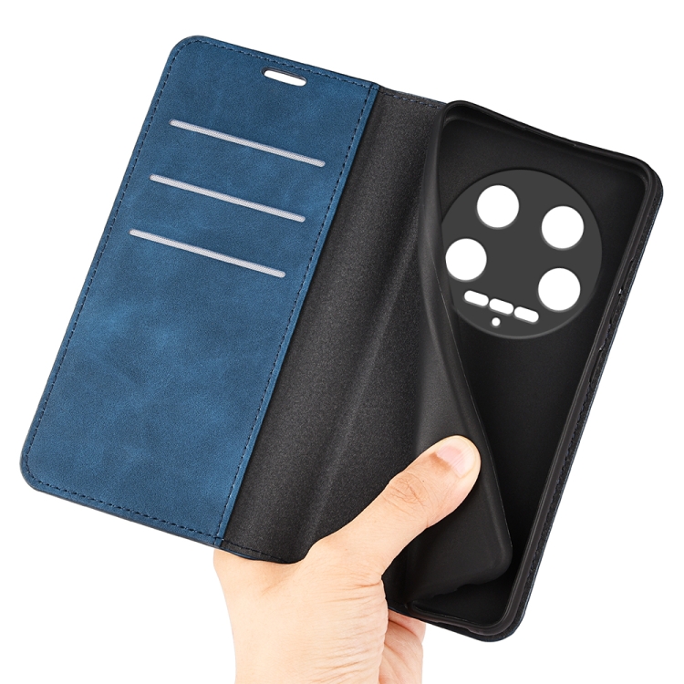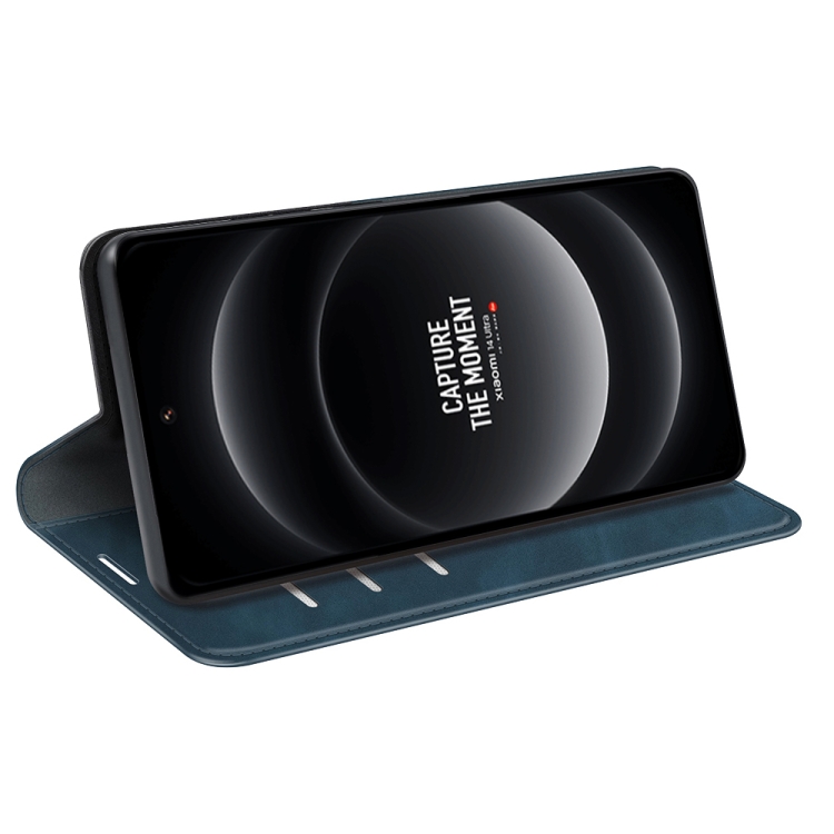 Para Xiaomi 14 Funda De Teléfono De Cuero Con Succión Magnética De Piel Ultra Retro (Azul Oscuro)