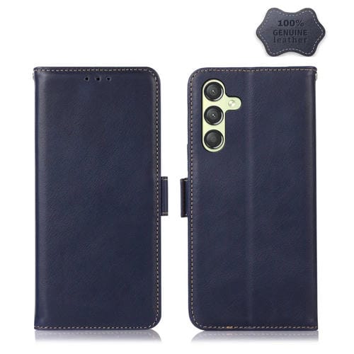 Para Xiaomi 14 Funda Para Teléfono Rfid De Cuero Genuino Con Textura De Caballo Loco Magnético (Azul)