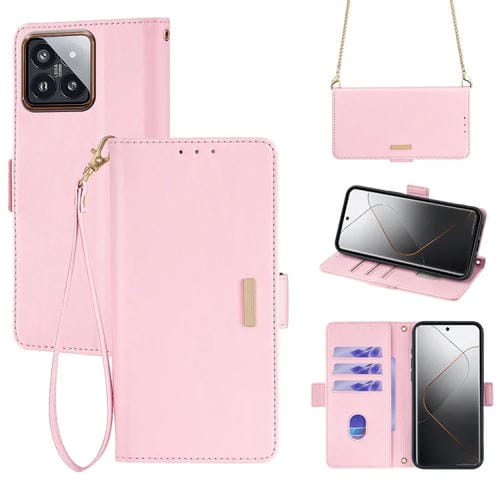 Para Xiaomi 14 Pro Funda De Cuero Para Teléfono Con Cadena Cruzada (Rosa)