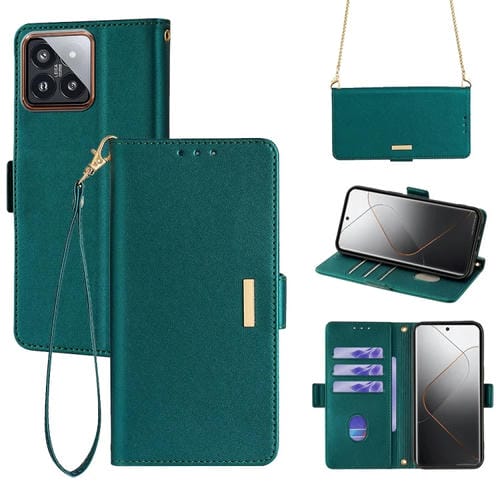 Para Xiaomi 14 Pro Funda De Cuero Para Teléfono Con Cadena Cruzada (Verde)
