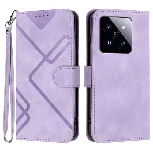 Para Xiaomi 14 Pro Line Pattern Skin Feel Funda De Cuero Para Teléfono (Púrpura Claro)