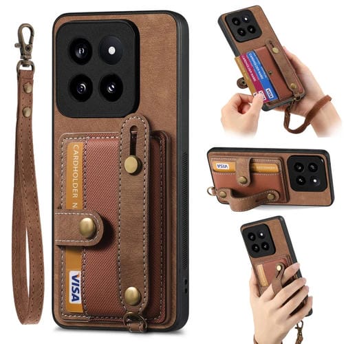 Para Xiaomi 14 Pro Retro Cross Muñequera Cartera Funda Trasera De Cuero Para Teléfono (Marrón)