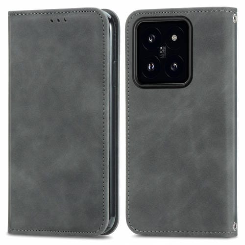Para Xiaomi 14 Pro Retro Skin Feel Funda De Teléfono De Cuero Con Tapa Magnética (Gris)