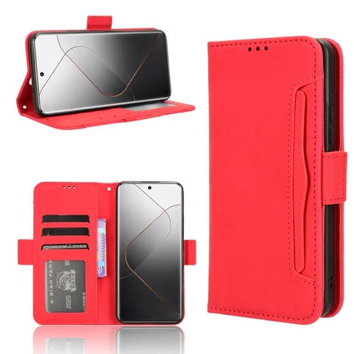 Para Xiaomi 14 Pro Skin Feel Becerro Textura Ranuras Para Tarjetas Funda De Cuero Para Teléfono (Rojo)
