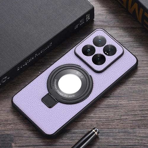 Para Xiaomi 14 Pro Soporte Para Lupa Litchi Texture Pu Funda Para Teléfono (Púrpura)