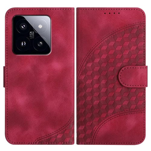 Para Xiaomi 14 Pro Yx0060 Funda De Cuero Para Teléfono Con Relieve Y Cabeza De Elefante Con Cordón (Rojo Rosa)
