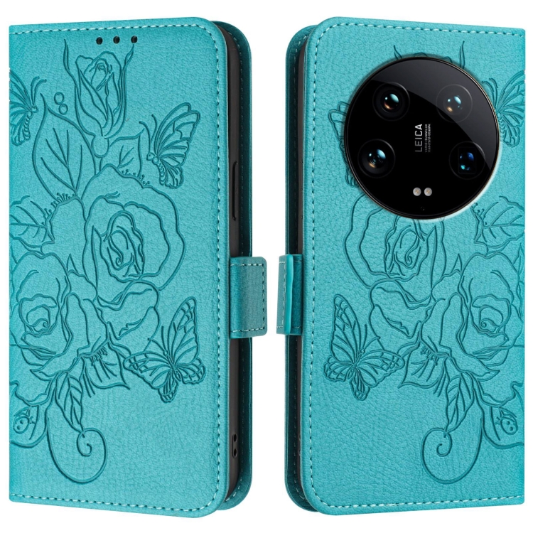 Para Xiaomi 14 Ultra 5G Global Embossed Rose Rfid Funda De Cuero Antirrobo Para Teléfono (Azul Claro)
