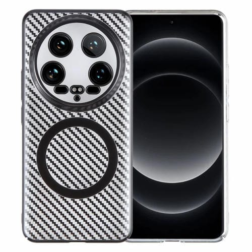 Para Xiaomi 14 Ultra 6D Caja De Teléfono Para Pc Magsafe Transparente De Fibra De Carbono Plateada (Negro Estrellado)