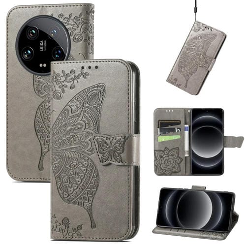 Para Xiaomi 14 Ultra Butterfly Love Flower Funda De Cuero En Relieve Para Teléfono (Gris)