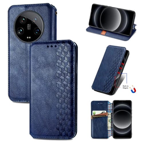 Para Xiaomi 14 Ultra Cubic Grid Funda De Teléfono De Cuero Magnético Prensado (Azul)