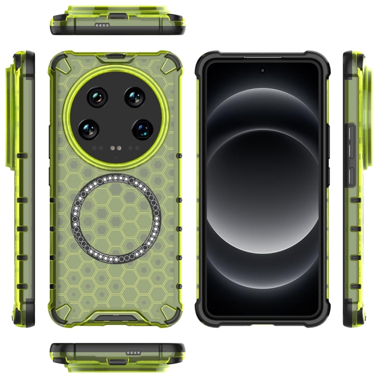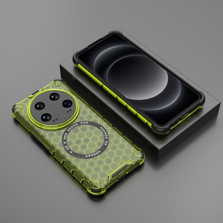 Para Xiaomi 14 Ultra Honeycomb Funda Para Teléfono Con Anillo Magnético A Prueba De Golpes (Verde)