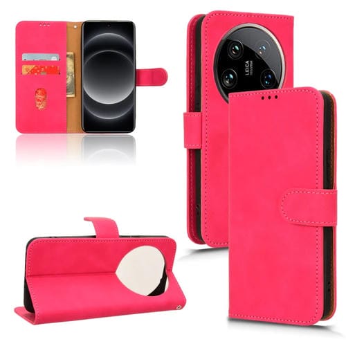 Para Xiaomi 14 Ultra Skin Feel Funda De Cuero Con Tapa Magnética Para Teléfono (Rojo Rosa)