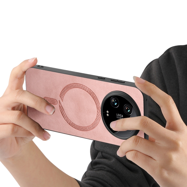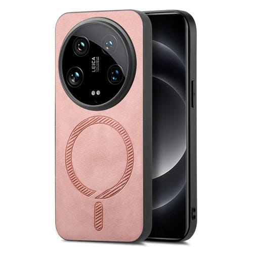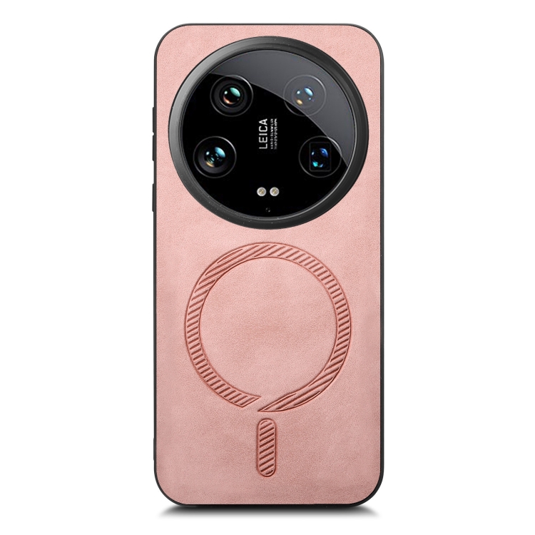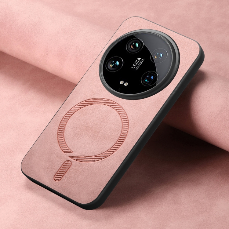 Para Xiaomi 14 Ultra Solid Color Retro Magsafe Pu Funda Para Teléfono Con Contraportada (Rosa)