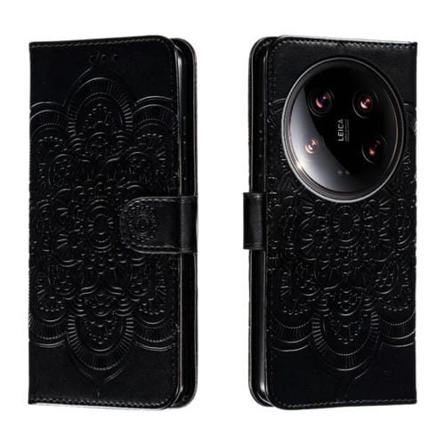 Para Xiaomi 14 Ultra Sun Mandala Funda De Cuero Para Teléfono Con Patrón En Relieve (Negro)