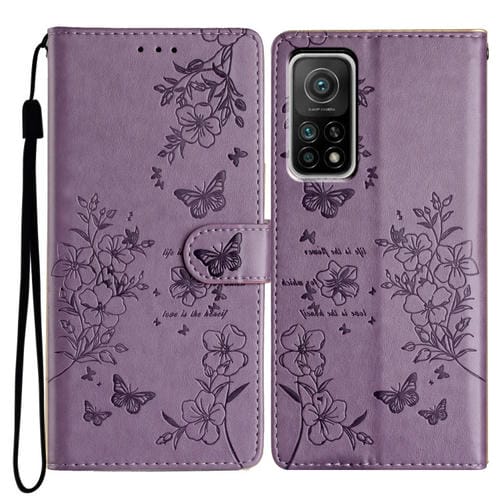 Para Xiaomi Mi 10T Pro 5G Funda de Cuero para Teléfono con Mariposas y Flores (Púrpura)