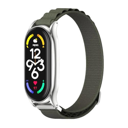 Banda de Reloj Mijobs Plus para Xiaomi Mi Band 6 / 5 / 4 / 3 Nylon Transpirable (Verde Militar Plateado)