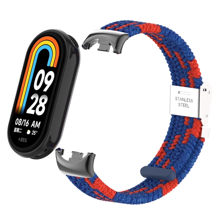 Correa de Reloj para Xiaomi Mi Band 8/8 Nfc con Metal Head y Hebilla de Acero (Azul Rojo)