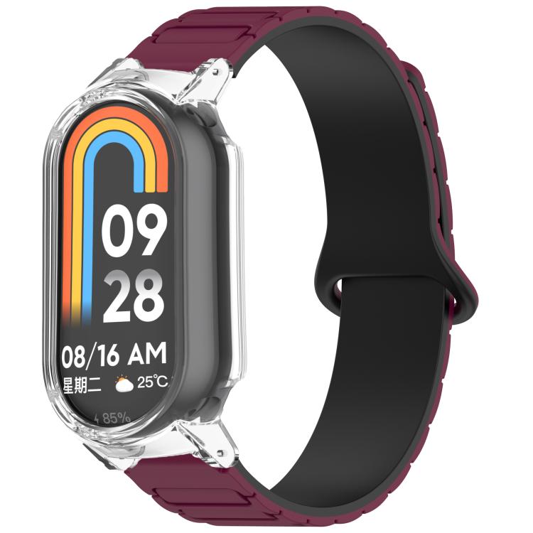 Para Xiaomi Mi Band 8/8 NFC Watch Case Correa de reloj de silicona magnética en forma de I integrada (vino rojo negro + transparente)