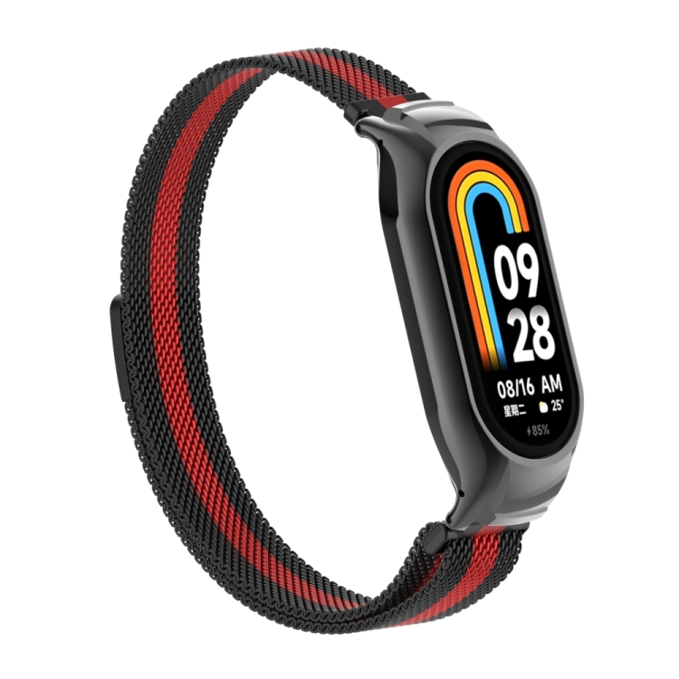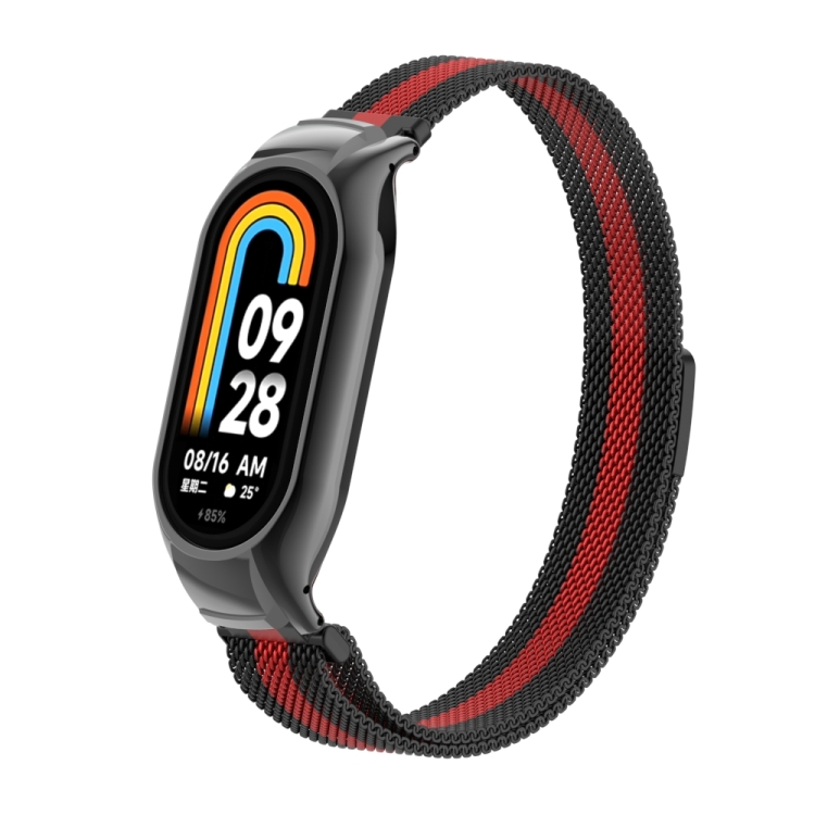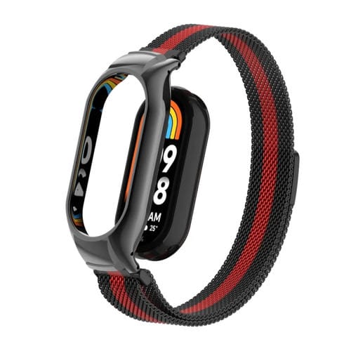 Caja de Metal Integrada para Xiaomi Mi Band 8 con Banda Magnética Milanesa (Negro + Rojo)