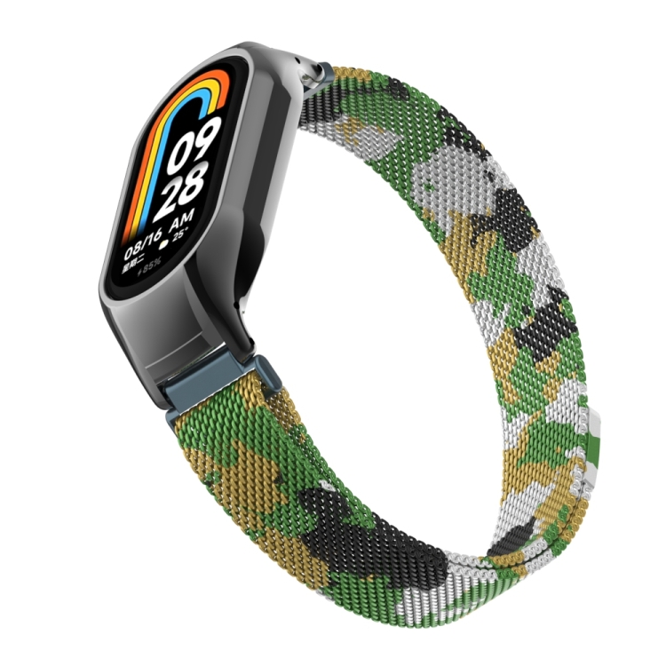Caja de Metal Integrada para Xiaomi Mi Band 8 + Banda Magnética Milanesa (Verde Militar)