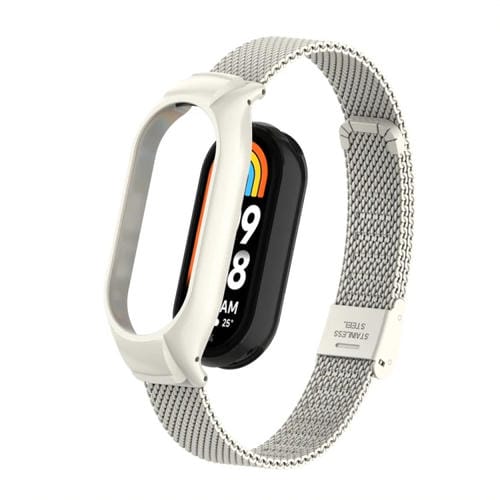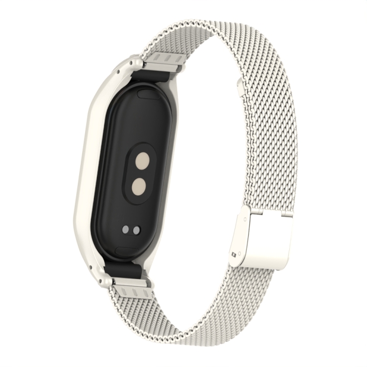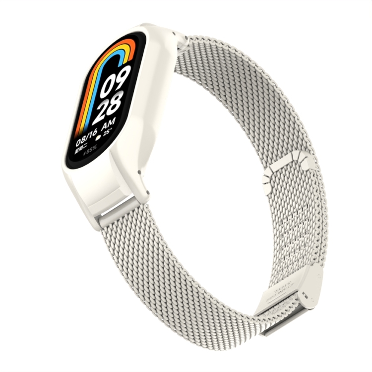 Caja de Metal Integrada para Xiaomi Mi Band 8 + Correa con Hebilla de Malla de Acero (Beige)