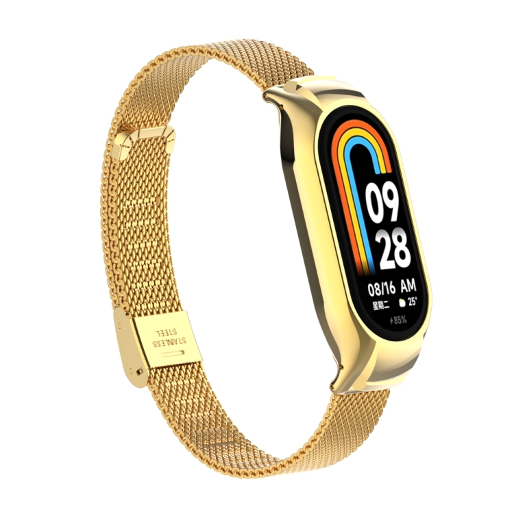 Caja de Metal Integrada + Correa con Hebilla de Malla de Acero para Xiaomi Mi Band 8 (Oro)