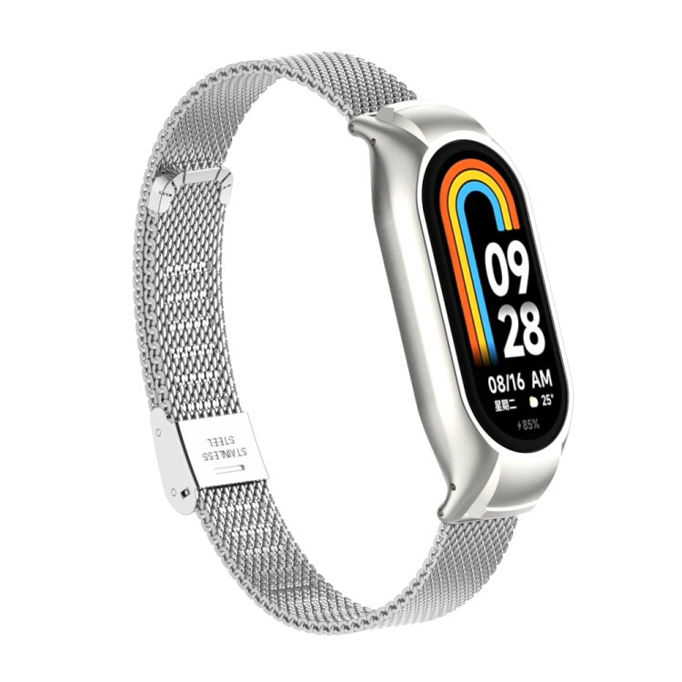 Caja de Metal Integrada para Xiaomi Mi Band 8 + Correa de Reloj con Hebilla de Malla de Acero (Plata)
