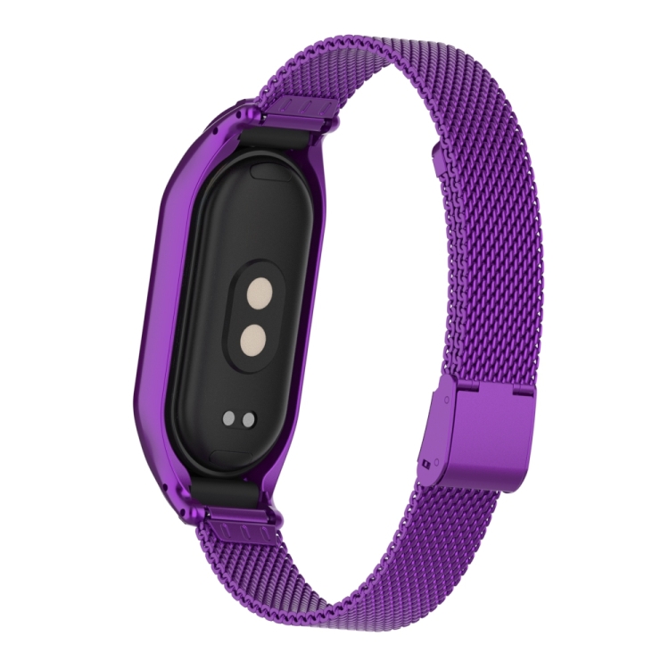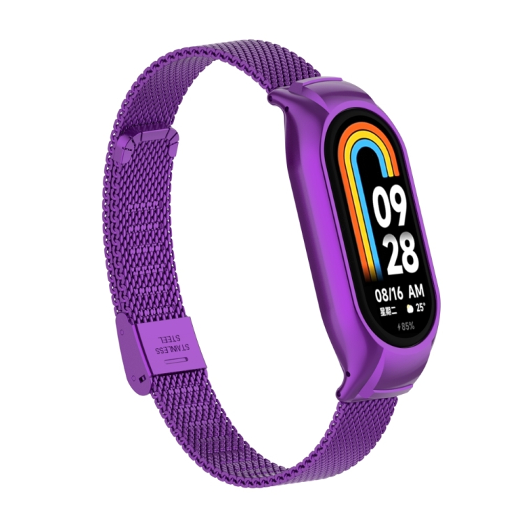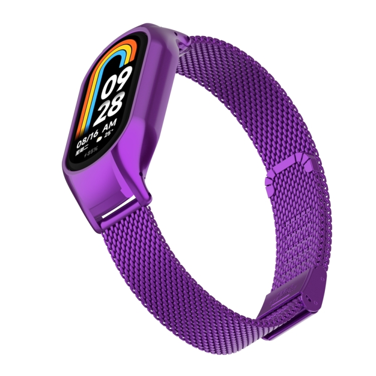 Caja de Metal Integrada para Xiaomi Mi Band 8 + Correa con Hebilla de Malla de Acero (Púrpura)