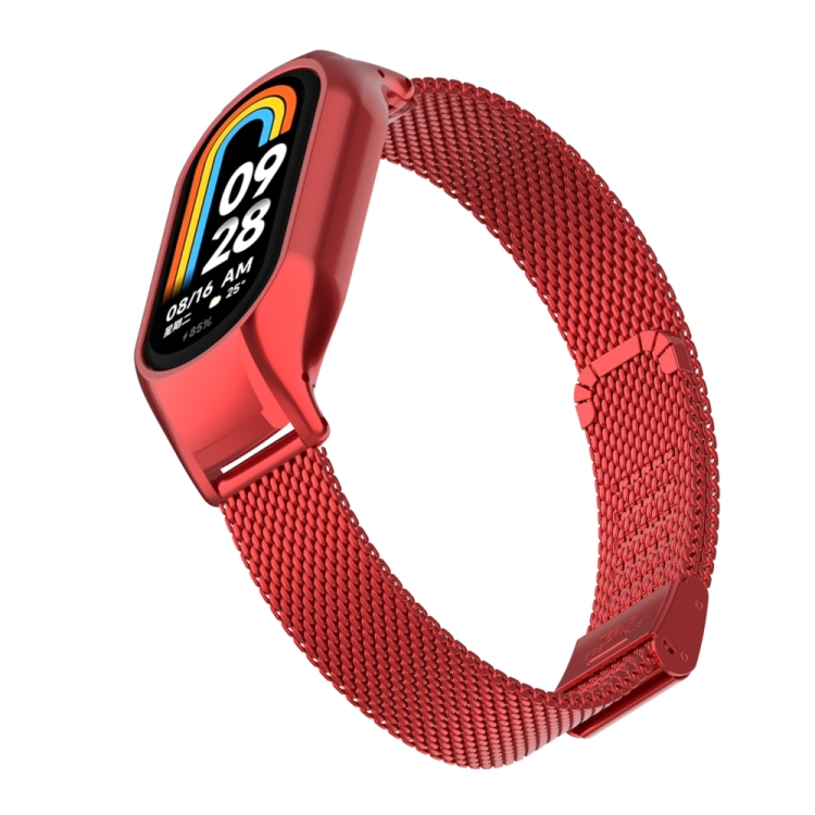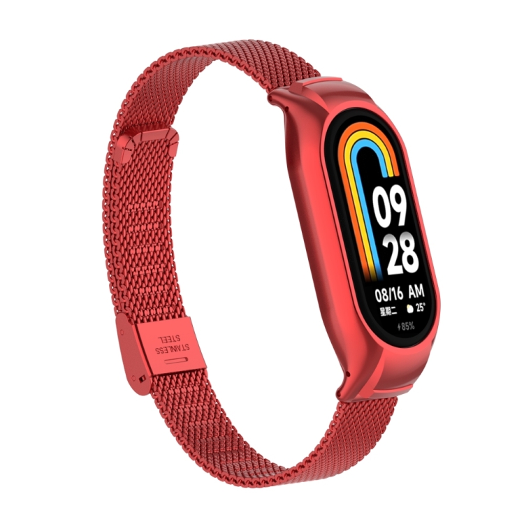 Caja de Metal Integrada para Xiaomi Mi Band 8 + Correa de Reloj con Hebilla de Malla de Acero (Rojo)