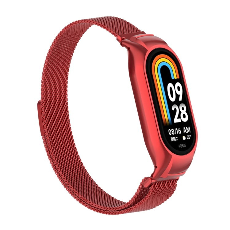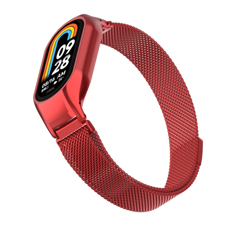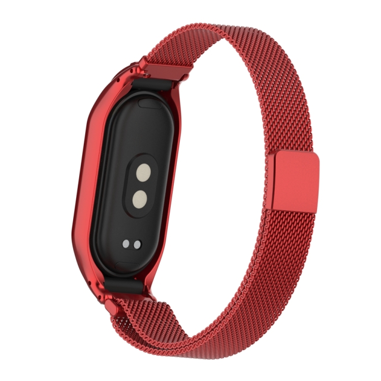 Estuche de Metal Integrado + Banda Magnética Milanesa para Xiaomi Mi Band 8 (Rojo)