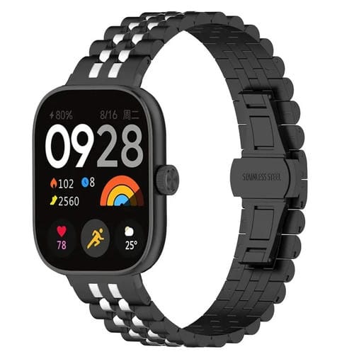 Correa de Reloj Metal Xiaomi Mi Band 8 Pro Hebilla Mariposa Cinco Cuentas (Negro Plata B)