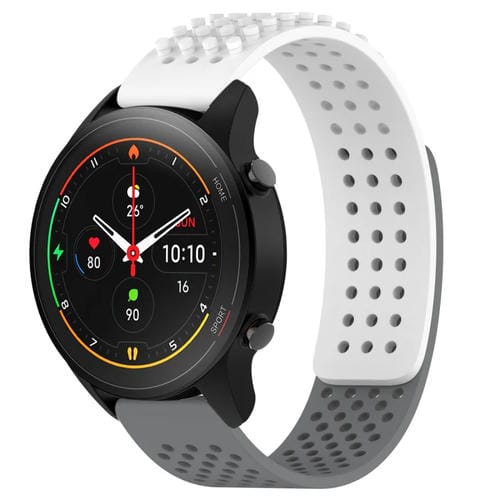 Correa de Silicona para Xiaomi Mi Watch S1 Pro con Puntos 3D Transpirables y Orificios 22mm (Blanco + Gris)