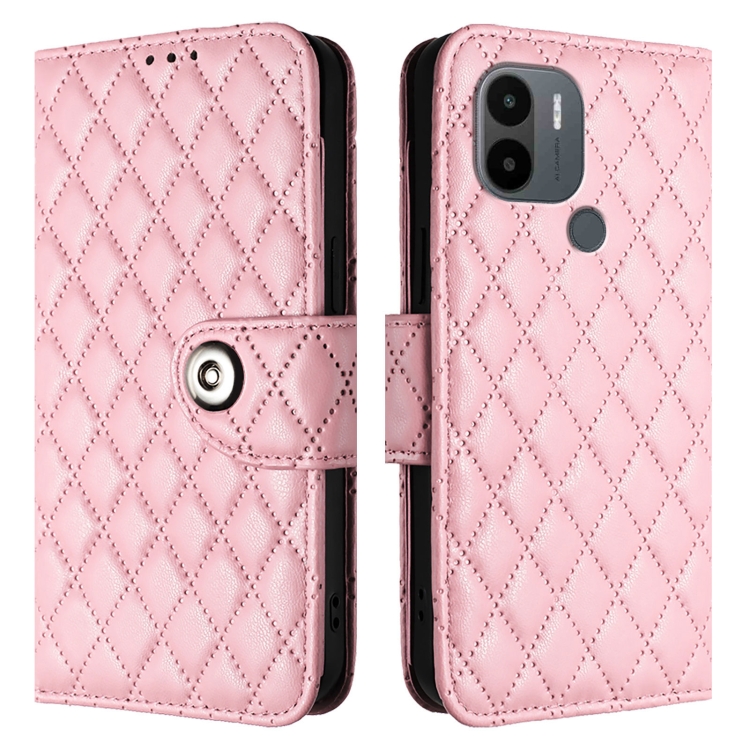 Para Xiaomi Poco C51 / C50 Funda para Teléfono con Tapa de Cuero con Textura Romboidal y Cordón (Rosa)