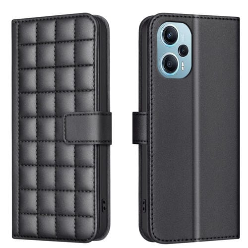 Para Xiaomi Poco F5 5G Funda de Cuero con Textura Cuadrada (Negro)